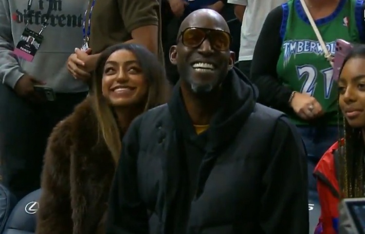 配资平台查询网站 狼王出没!加内特现场观战森林狼收官战 与爱德华兹热情相拥!